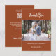 Fira din speciella dag och uttryck din hjärtliga tacksamhet med våra anpassade fotobryllupskort, elegant designade med en sofistikerad och trendig bränd bakgrund. Perfekta för att dela dina favoritbryllupsminnen, dessa kort är både stilfulla och personliga och erbjuder ett unikt sätt att tacka dina gäster. Anpassa och lägg till ditt foto och tackmeddelande. Vit text.