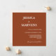 Den här terrakotta-bröllopsinbjudan är precis vad du behöver för att fullborda ditt moderna rustika bohemiska bröllop. Perfekt för en klassisk minimalistisk västerländsk look eller en retro höstboho känsla. Den enkla naturliga vita texten sticker ut mot den livfulla höstbakgrunden.