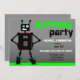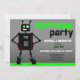 Anpassningsbar pojkarna födelsedagsfest inbjudan med en över säker robot med partiell silhuettdesign och med ett grått-, svartvitt- och grönt färg-schema. Underbar inbjudan till baby, småbarn och unga pojkars födelsedagar.