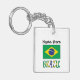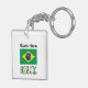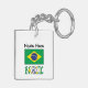 Det är den brasilianska Flagga! Utformningen har också den namn BRAZIL som är formaterad i samma färg som flagga. Ovanför, ett ställe för ett namn att anpassa sig själv eller anpassa den här akryliska nyckelkedjan för en gåva. Designprogram visas på båda sidor av nyckelkedjan.