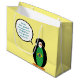 Penguin älskade sina resor i Brasilien. Hon bär stolt en väst av den brasilianska flagga. Hon modellerar det med en pratbubbla. Byt ord i samtalsbubblan för att skapa ett unikt budskap till dina gäster. Du kan, om du vill, ändra bakgrunden till färg från gult till färg som kompletterar ditt party-tema eller din hemdekoration.