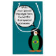 Ms. Penguin njöt av sina resor i Brasilien. Hon bär en väst i den gröna, blå, gula och vita brasilianska flaggan. Hon modellerar den med en pratbubbla på denna lilla presentpåse. Ändra orden i hennes pratbubbla för att skapa ett meddelande till din presentmottagare. Ändra bakgrundsfärgen på presentpåsen för att komplettera ditt festtema eller personliga smak.