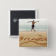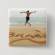 COPYRIGHT Stephanie Rabemiafara / DanitaDelimont.com| AF36 SRA0000.jpg| BRASILIEN. Barechest man med badande kostym som hoppade på sanden över namn Brasilien i sanden och hoppade över havet