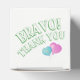 Whimiscal rhinoceros på en unicycle och med en flagga (som du kan lägga till en egen början på på flagga) och med två ballonger runt cykelsätet och elefantbalansering på en stor färglös cirkus boll. Tack för att du föredrar lådor, idealiskt för en unik babydusch tack. Blådor lästa på översta Bravo! Tack med hjärtformade ballonger. Ursprunglig konsmålning och design av vattenfärgskonst för djur från Sarah Trett. www.sarahtrett.com för www.mylittleeden.com