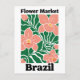 Celebrate the exotic and breathtaking flora of South America with this striking Brazil Flower Market design. This modern illustration features a lush arrangement of oversized peach-colored orchids with golden centers, winding through rhythmic, deep green tropical foliage.