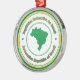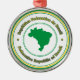 A silhouette of the country of Brazil is at the centre of this design. The text that features above and below the silhouette is in English and Portuguese. The colours of the design are taken from the colours of the Brazilian flag.