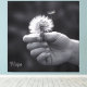A gentle hand holds a dandelion ready to scatter in the wind. In black and white, the image captures the purity of a moment when a wish is released into the unknown — simple, fragile, and full of hope.