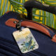 Den vackra digitala konsthandlingen har texten "Just Breathe" i glittery guld-skript, etheral vattencolor-bakgrund och vintage blue bird med krona och blommor.