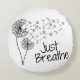 Denna runda kudde med Posh Little Finds kommer att ge ett uppmjukande budskap om snyggt som kommer att ange tonen för ditt bostadsområde. Dandelioner som blåser i bron tillsammans med lekfulla fjärilar och ett stressande fritt budskap om "Just Breathe" påminner dig om att ta ett ögonblick för att ödelägga och slappna av i ditt bostadsområde.