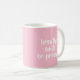 Ett inspirerande mugg med bekräftelsen"andas leende". Det kommer att påminna er om att behålla lugnen genom att betala uppmärksamheten på din andning, fokusera på positiva saker genom att le och att dröja för närvarande. Ett idealiskt mantra för dem som utövar yoga, meditation eller mindhet. Den typografiska designen har vit text på en rosa bakgrund.