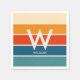 Trendiga personliga festservetter med breda ränder i retrofärger. Stort centrerat monogram och tillhörande namn. Ren, enkel minimalistisk typografi. Helt anpassningsbar.