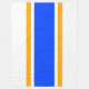 Den här färgstarka roligten har en gyllene gult som flyter ränder som lyfter fram ett levande, levande blått center rand mot en vit bakgrund.