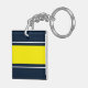 Den här djärva, sportiska designen har en stor ljusstark gult rand som lyfts fram genom att flyta ett enda vitt streck mot en marin blå bakgrund.