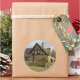 Runt fotodekal med den halvtickade Shakespeare's stugor i staden Broadway i Cotswäds, England, Storbritannien.