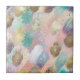 Den här sömlösa keramiska plattan i abstrakt visar dynamiska diagonala penseldrag i en levande blandning av pastel och ljusa färger - rosa, teal, lila, blått och vitt - med skrapande struktur. Guld och brons glitter-accenter ger gnistra och kontrast, medan utspridda guld-konfektytor ger en positiv beröring. Med sin djärva rörelse och firande känsla är denna design perfekt för roligt, kreativ och modern estetik.