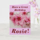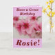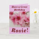 Blommigtens personlig födelsedagskort med vacker blommar för rosa persikor. Det är enkelt att anpassa texten efter behov.