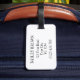 Rosa-, svartvitt- och silver-design med eget namn och kontaktuppgifter på baksidan.