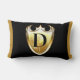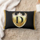 Den här lumbalkudden visningar Brev D inuti en gyllene elegant med ett unikt typsnitt över fram- och bakpanelen med mjuk skrynklingsfri sticka har ett gömt blixtlås med syntetfyllda infogningar. Alla kuddar är tillverkade av 100 % polyester med högkvalitativ sublimering av dubbla-sidig utskrift.