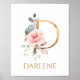 Elegant Brev D monogram plantskoleodling poster med vattenfärgad rosa persiko-ro och grönt bladverk.