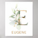 Brev E Monogram Grönt och guld foliage Nursery Poster