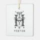Brev H Elegant Monogram jul Ornament. Elegant, dekorativt monogram brev H i en trendig svart + vit färg palett, även om allt färger är redigerbart! Anpassa utsmyckningens baksida med ett foto. Alla brev A till Z finns i de lagrade filerna i den här designen. Klicka på "Anpassa den här mallen" och välj "Redigera med design verktyg". Klicka på ikonen öga för att slå på/av lagrar om du vill välja ett annat monogram brev eller skapa ett dekorationsämne med två monogram brev. © Kimbelled, LLC