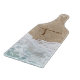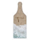 Brev "T" som är skriftligt i sanden på en strand på kanten av vatten.