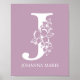 Brev J Blommigt Monogram Namn Nursery Modern Poster