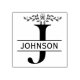 Anpassade Black Brev J Split Monogram Frimärke med modern typografi med elegant löv och en fjärilspets. Anpassa den här klassiska designen genom att lägga till en namn. Perfekt för speciella evenemang, t.ex. bröllop, företag eller använda.