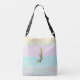 Hela over Mönster Tote = Denna stora tote-väska i kor till kroppen kor är täckt med ett modernt utseende GULT LAVENDER ROSA MINT GRÖNT PASTEL BRUSH STROKES STRIPED WATERCOLOR bakgrund och magiskt mousserande GOLDEN GLITTER DOTS.
