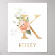 Elegant Brev K monogram plantskoleodling poster med vattenfärgad rosa persiko-ro och grönt bladverk.