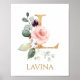 Elegant Brev L monogram plantskoleodling poster med vattenfärg på rosa ros och grönt bladverk.