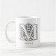 Anpassade, vitt kaffe mugg med brev M i unik mörk-färgad-typografi. Lägg till ditt namn med hjälp av anpassningsfunktionen.