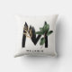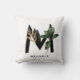 Anpassade brev M monogramkudde med vattenfärgade tropiska handflatan löv, faux guld foil löv och svarta vattenfärgstensaccenter. Anpassa den här tropiska monogramkudden genom att lägga till ditt namn eller annan information. Den här boho brev M-monogramkudden kommer att bli perfekt som gåva. Andra brev finns tillgängliga.