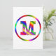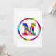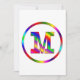 Ett färgstarkt monogram med brev M i regnbåge färg inuti en regnbågscirkel. ditt pride med ditt namn med roligt lycklig, första M.