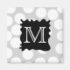 Den här utformningen har en svart platta och vit monogram brev, på en mönster av vita fläckar på ljust grått. Det första brev kan vara personlig. En monokrom roligt.