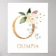 Elegant Brev O monogram plantskoleodling poster med vattenfärgat vitt grädde ro och grönt bladverk.