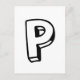 Vi presenterar vår elegant Brev P-vykort - ett snyggt- och personlig sätt att skicka varmt önskemål eller lägga till lite sofistikering på ditt space. Det här vykortet har ett snyggt utformat brev P i ett smakfullt teckensnitt som skapar en visuellt tilltalande utformning och anpassade. Gör ett påstående med Brev P-vykortet - ett chic- och anpassade-tillbehör som gör hälsning eller dekorera lite sofistikerat. Beställ nu att du ska anpassa dina meddelanden och blanksteg med det här vackert designade vykortet!