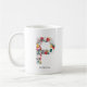 Kvismisk, festlig och elegant blommigt brev mugg med blommor i blad i rött, grönt, guld och grått. Anpassa genom att lägga till namn eller kort. Andra färg och brev finns tillgängliga.
