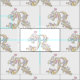 brev-grafik med söt i teckning i grått med skuggor av gult, lila, rosa och vit på vit bakgrund. Bakgrunden till färg kan ändras till ditt eget färg-val om det behövs. Personlig med din egen ursprungliga R, perfekt för anpassade syprojekt. © Original teckning och design by Sarah Trett. www.sarahtrett.com för www.mylittleeden.com