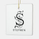 Brev S Elegant Monogram jul Ornament. Elegant, dekorativ monogram brev S i en trendig svart + vit färg palett, även om allt färger är redigerbart! Anpassa utsmyckningens baksida med ett foto. Alla brev A till Z finns i de lagrade filerna i den här designen. Klicka på "Anpassa den här mallen" och välj "Redigera med design verktyg". Klicka på ikonen öga för att slå på/av lagrar om du vill välja ett annat monogram brev eller skapa ett dekorationsämne med två monogram brev. © Kimbelled, LLC