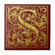 Kartläggning av dekorativa brev S inledande monogram, kalligrafi av stil-typografi, första brev i rött och faux guld (nyanser av gult med högdagrar och skuggor för att simulera gylande struktur av metallisk guld-löv).