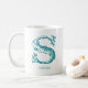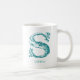 Anpassade, vitt kaffe mugg med brev S i unik tealtypografi av färgaden. Lägg till ditt namn med hjälp av anpassningsfunktionen.