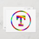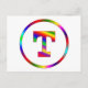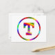 Ett färgstarkt monogram med brev T i regnbåge färg inuti en regnbågscirkel. ditt pride med ditt namn med roligt lycklig initial T.