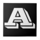 Keramiska plattor i brev. Övre eller nedre plattor fodral brev. Du anpassar dig med brev eller brev för den keramiska plattan eller mosaiksignalen. Brev för vädersäkra skyltar, husnummer. Vit mot svart bakgrund.