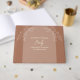 Skapa en fin bröllopspresent. Denna presentalbum ger din familj och vänner möjlighet att uttrycka skriftliga meddelanden till bruden att läsa och minnas i många år framöver. Blommig design. Brun mocha-färg visas. Anpassa framsidan och sidan av boken med önskad text. Använd mallen för att skapa dina egna blommiga brev till brudens bröllopsgästbok.