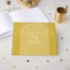 Skapa en fin bröllopssouvenir. Denna minnesbok ger din familj och vänner möjlighet att uttrycka skriftliga meddelanden till bruden att läsa och minnas i många år framöver. Blommig design. Guld färg visas. Du kan ändra texten på framsidan och anpassa texten på sidopanelet. Använd mallen för att skapa dina egna guldbrev till brudens bröllopsgästbok.