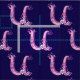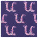 Söt brev U hand plockade grafik i skuggor av lila och rosa på mörk blått bakgrund. Bakgrunden till färg kan ändras till ditt eget färg-val om det krävs för närvarande mörk blått. Personlig med din egen ursprungliga struktur visar U, perfekt för anpassade syprojekt. Annan tillgänglig brev. © Original teckning och design by Sarah Trett. www.sarahtrett.com för www.mylittleeden.com