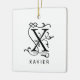Brev X Elegant Monogram jul Ornament. Elegant, dekorativ monogram brev X i en trendig svart + vit färg palett, även om allt färger är redigerbart! Anpassa utsmyckningens baksida med ett foto. Alla brev A till Z finns i de lagrade filerna i den här designen. Klicka på "Anpassa den här mallen" och välj "Redigera med design verktyg". Klicka på ikonen öga för att slå på/av lagrar om du vill välja ett annat monogram brev eller skapa ett dekorationsämne med två monogram brev. © Kimbelled, LLC