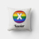Brev X Initial & Namn Gay pride Rainbow Monogram Dekorativ kudde. Den här cirkelformade designen har en vit brev X med monogrammet på en bakgrund för LGBTQ-Pridet Flagga. Lägg till en namn i den här kudden så att du kan göra något unikt och personligt för din hemskår. Underbar för dig eller en speciell person i ditt liv.