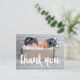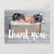 Säg Tack med det här foto-Baby-vykortet för en pojke eller flicka. Elke Clarke © Övrigt färg och stilar finns i vår butik på www.zazzle.com/monogramgallery. Modern, vit stil med orden "tack för" fotoöverläggningsdesign.